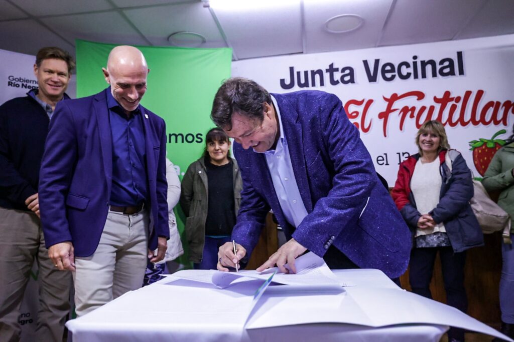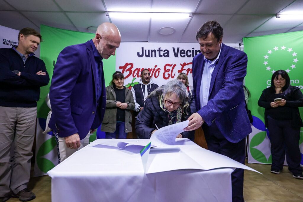 El Gobernador Alberto Weretilneck encabezó el acto de firma del contrato de obra para la instalación de servicios básicos en 189 lotes del barrio El Frutillar, de Bariloche. El proyecto representa un paso clave hacia el desarrollo urbano planificado, garantizando el acceso a servicios esenciales para las familias beneficiarias y reafirmando el compromiso del Gobierno de Río Negro con el desarrollo de la comunidad y la mejora de su calidad de vida.