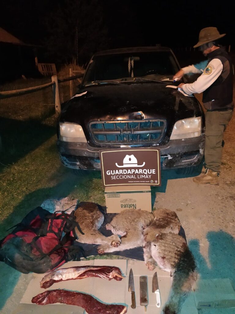 El procedimiento fue realizado de manera conjunta por guardaparques de la Zona Norte y la Seccional Limay, junto con la Policía de la Provincia de Neuquén. Durante la intervención, el personal encontró a un grupo de personas residentes de la zona, en pleno campo, luego de haber dado muerte a un guanaco y mientras lo despostaban.