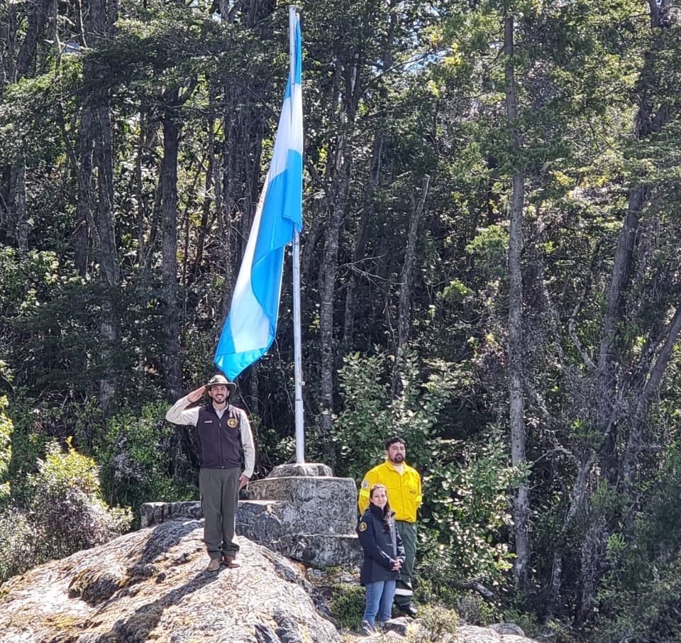 En este marco especial se realizó el tradicional toque de sirena en honor al Perito Moreno, seguido por un minuto de silencio interpretado por la Banda de la Escuela Militar de Montaña, en gesto de respeto y gratitud hacia quien fue considerado el “centinela de los Parques Nacionales”.