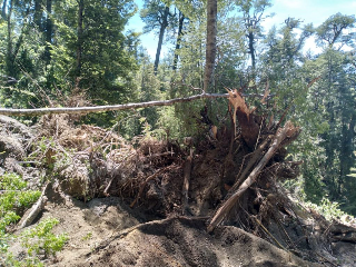Al arribar al lugar se constató la apertura de un camino interno de entre cuatro y seis metros de ancho y unos 150 metros de extensión, al oeste de la Ruta Nacional Nº 231, a la altura del kilómetro 13. El desmonte ocasionó un impacto ambiental significativo, con corte y remoción de raíz de ejemplares nativos —principalmente coihues— además de arbustos, caña colihue y alteración del suelo en toda el área intervenida.