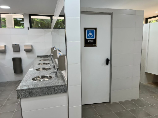 El edificio cuenta con sanitarios para mujeres, hombres y sanitarios accesibles, cumpliendo con criterios de accesibilidad universal. Las instalaciones ofrecen mayor comodidad, iluminación adecuada, mesadas amplias, equipamiento de acero inoxidable y espacios pensados para facilitar la circulación y reforzar las condiciones de higiene.