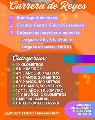 La tradicional “Carrera de Reyes”, organizada por Deportes de la Municipalidad de San Carlos de Bariloche, invita a toda la comunidad a participar el domingo 4 de enero. Será una jornada festiva de encuentro en el Circuito Centro Cívico/Costanera, promoviendo el deporte, la vida sana y la unión de vecinos de todas las edades.
