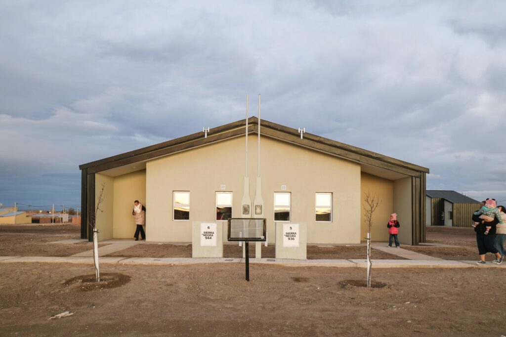 Las unidades forman parte del programa Habitar Río Negro. Se trata de viviendas apareadas de 38 metros cuadrados, construidas con sistema tradicional mixto.