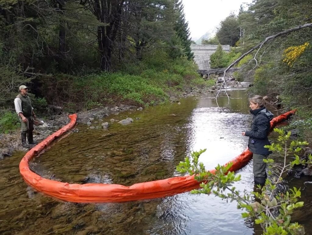 Durante el operativo se aplicó material absorbente orgánico biodegradable (Sphagnum), se construyó un dique de contención y se instaló una barrera flotante de 30 metros aguas abajo para evitar la dispersión del material derramado.