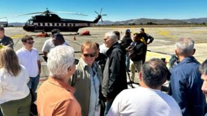 Uno de los puntos centrales de la jornada fue la presentación del helicóptero Sikorsky S-61, una aeronave pesada única en su tipo en el país para la lucha contra incendios forestales. El helicóptero tiene capacidad para transportar entre 17 y 19 personas y puede descargar hasta 4.000 litros de agua mediante sistemas Bambi Bucket, con la posibilidad de ampliar esa capacidad a 4.500 litros a través de un tanque ventral adicional. Su diseño le permite operar con fuertes ráfagas de viento y sostener tareas continuas durante toda la jornada, con respaldo técnico y mecánico permanente, lo que garantiza una respuesta rápida y eficaz ante incendios de gran magnitud.