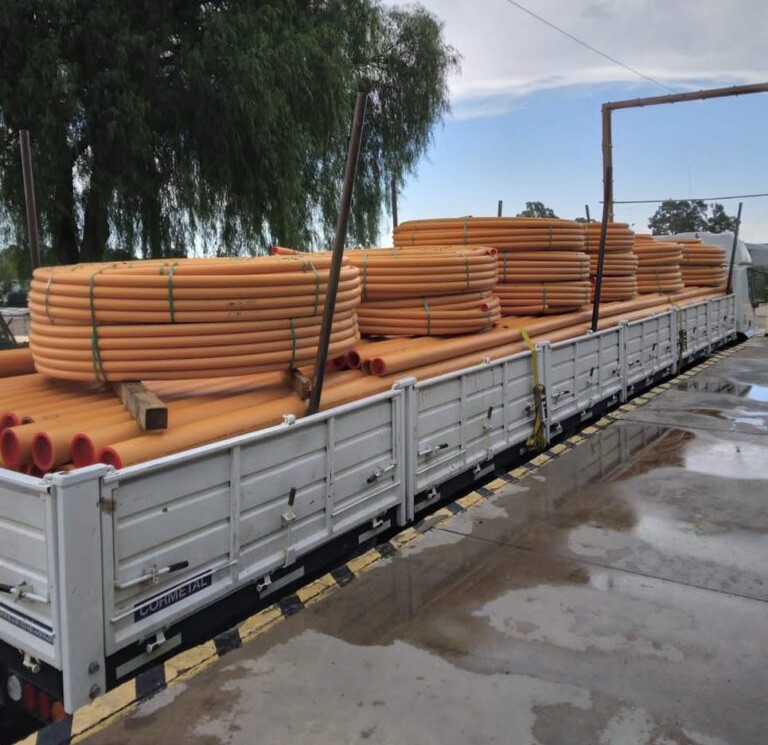 Arribó el camión a la localidad, desde Pico Truncado, con los caños para la extensión de red de gas, que llevará adelante la Empresa CHIMEN AYKE .