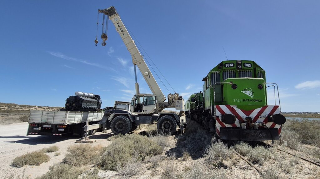 En el marco del proceso de fortalecimiento del sistema ferroviario provincial que impulsa el Gobierno de Río Negro, Tren Patagónico recibió en sus talleres de San Antonio Oeste el motor completamente reparado y recalificado que será reinstalado en la locomotora GT22 9073, una de las unidades principales del servicio de pasajeros que conecta Viedma con San Carlos de Bariloche.